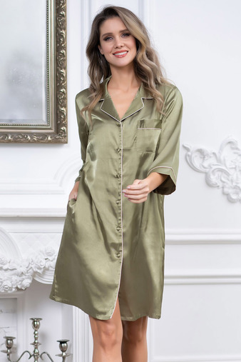 Рубашка Mia-Mella с центральной застежкой на пуговицы на пуговицах с рукавами длиной 3/4, выполнена из искусственного шелкового полотна с атласным блеском. Низ рукавов, борт и воротник обработаны атласными кантами. Белье Mia-Mella выполнено из современных вискозных и хлопковых тканей, дополненных кружевной отделкой и стильными аксессуарами. Современное, модное и удобное, белье Mia-Mella способствует улучшению качества ежедневного отдыха женщины благодаря продуманной конструкции, натуральным материалам, аккуратному пошиву и бережному, внимательному отношению к деталям. Состав материала изделия: полиэстер 100%. Страна производителя: Италия.