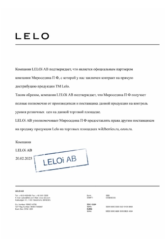LeloLELO – шведский бренд-производитель самых изысканных и роскошных секс-игрушек в мире, относящихся к категории премиальных товаров. Погрузитесь в атмосферу сладостного предвкушения и получите опыт роскошного наслаждения, который может подарить только Lelo.