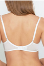 Бюстгальтер с мягкой чашкой выполнен из эластичного кружева и эластичной сетки. Конструкция "Т"-образной чашки придает груди привлекательную округлую форму. Украшено изделие бантиком с подвеской из тр