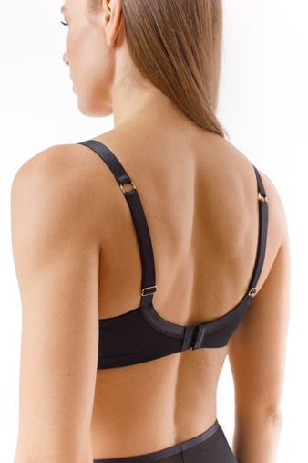 Бюстгальтер пуш-ап от французского бренда Coquette Revue – нежная и романтическая модель, корректирующая линии тела. Формованные чашечки на каркасах создают идеальную округлую форму груди и обеспечивают комфортную посадку. Вкладыши пуш-ап съемные. Модель выполнена из эластичного сетчатого полотна и гладкой микрофибры, создающих контрастный декор. Снизу есть узкий пояс из эластичного полотна с микрофиброй. Тонкие бретели регулируются по высоте, сзади есть застежка на крючках. В передней части есть маленький металлический медальон с логотипом. Состав ткани: полиамид – 85%, эластан – 15%. Чокер в комплект не входит и представлен в каталоге бренда отдельно.