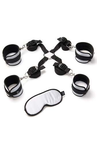 В комплект входят четыре мягкие манжеты на запястья и щиколотки, прочные регулируемые ремни и атласная маска. Центральная часть конструкции проходит под матрасом, оставаясь скрытой, в то время как прочные ремни снаружи обеспечивают фиксацию. Каждая манжета фиксируется с помощью надёжных карабинов и липучек, которые не натирают кожу и плотно прилегают, не позволяя вырваться, но оставляя ощущение комфорта. Манжеты можно использовать как в составе системы, так и отдельно, соединяя между собой или закрепляя на других частях мебели.