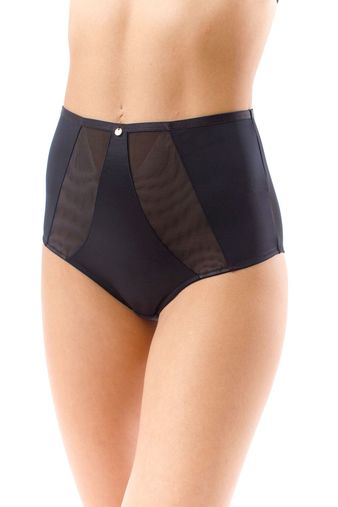 Трусы макси с высокой линией талии, выполнены из сатинового полотна и эластичного кружева. Украшение металлический медальон.