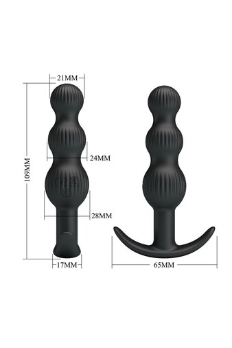 Анальная пробка Sidney из коллекции Pretty Love от бренда Baile понравится всем любителям анальной стимуляции. Гибкий удлиненный стержень, оснащенный шариками разного диаметра, обеспечивает плавное и комфортное введение, позволяя чувствовать каждый изгиб игрушки. Шарики постепенно увеличиваются в размерах, создавая невероятно приятные ощущения в процессе использования. С десятью бесшумными режимами вибрации вы сможете найти именно тот, который удовлетворит все ваши желания. Выбирайте более интенсивные ощущения или же наслаждайтесь легкими вибрациями. Изготовленная из высококачественного силикона, анальная пробка гарантирует комфорт во время введения, а также легкость в уходе. Материал приятно согревается от температуры тела. Игрушка заряжается от USB, а управлять ей можно с помощью кнопки на корпусе. С анальной пробкой рекомендуется использовать лубриканты на водной и гибридной основе. Для обработки изделия используйте той-клинер в формате спрея. После обработки рекомендуется насухо протереть безворсовым одноразовым полотенцем. Храните игрушку в индивидуальном мешочке из не окрашивающего материала. Размеры: длина - 10,5 см, диаметр минимальный - 2,1 см, максимальный - 2,8 cм.
