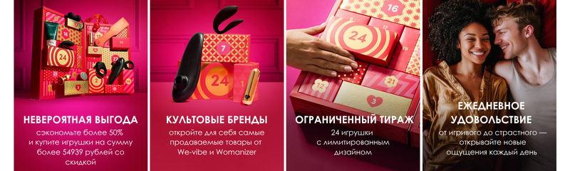 Этот календарь — не просто набор интимных сюрпризов. Это повод день за днем поддерживать искру, пробуждать предвкушение и получать совместное удовольствие, открывая новые стороны близости.