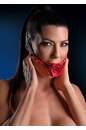 Шарик выполнен из высококачественного силикона: он плотно заполняет рот, но ощущается комфортно при ношении. Розочка, расположенная на внешней части кляпа, придает ему почти декоративный вид в качестве детали образа, которая сразу задает нужное настроение.