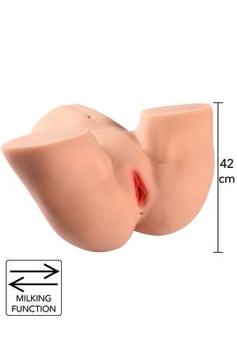 Основная особенность модели – встроенный мотор с функцией “доения” и всасывания. Он работает в 7 режимах, изменяя ритм, силу сжатия и всасывающих движений, за счет чего можно подобрать комфортный или более интенсивный по ощущениям сценарий. Устройство рассчитано на то, чтобы буквально “выжимать” оргазм, имитируя ритмичные сжимающие движения по стволу пениса. Вес 16 кг позволяет использовать торс практически без удержания руками: он устойчив и при спокойном темпе движений, и при интенсивном.