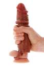 Насадка изготовлена из двухслойного мягкого силикона: между слоями находится смазка, благодаря которой внешний слой двигается и смещается почти как настоящая кожа. На ощупь поверхность насадки мягкая, с выраженной текстурой кожи, прожилками и анатомически сформированной головкой.