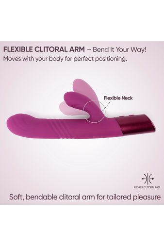 Основная часть с мягко закругленной головкой обеспечивает направленное вагинальное воздействие за счет 10 режимов совмещенных поступательных движений и вибраций. Отдельный мотор в клиторальном стимуляторе отвечает за внешнюю стимуляцию и дает трепещущие вибрации в 10 режимах, которые равномерно распределяются по клитору. Каждый мотор можно включать и регулировать по отдельности или использовать вместе, и это позволяет настроить интенсивность и характер ощущений под свои предпочтения.