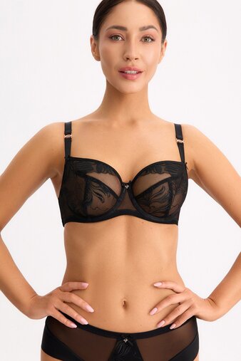 Классический мягкий бюстгальтер из линейки Black Diamond от Bella Misteria с чашками из вышитого фатина.