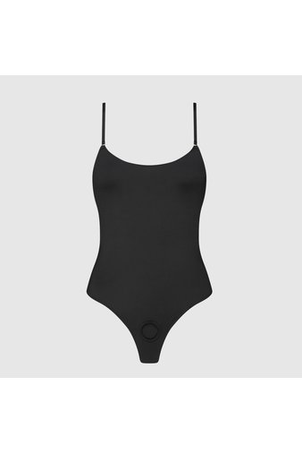 Это гибридная вещь на стыке нижнего белья и одежды: её можно носить как самостоятельный элемент гардероба. Скрытое спереди растяжимое силиконовое кольцо открывает путь к новой эстетике близости, где удовольствие становится частью стиля.