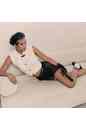 Пояс шортиков не сковывает движений, но при этом подчеркивает линии тела с изяществом. Эластичный пояс аккуратно подчеркивает талию, визуально делая силуэт более утонченным. Сзади - деликатная плиссированная вставка, которая мягко поддерживает ягодицы, создавая естественный эффект push-up. Спереди - практически незаметное растяжимое силиконовое кольцо для легкой установки любой насадки для страпона.