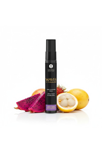 Shunga Waves of Pleasure Exotic Fruits – оральный спрей со вкусом экзотических фруктов, который делает любые оральные практики более комфортными, влажными и чувственными за счет усиленного слюноотделения. Он рассчитан на использование во время поцелуев, лизания и стимуляции эрогенных зон, когда важно, чтобы во рту было достаточно влажно и не было сухости или дискомфорта.