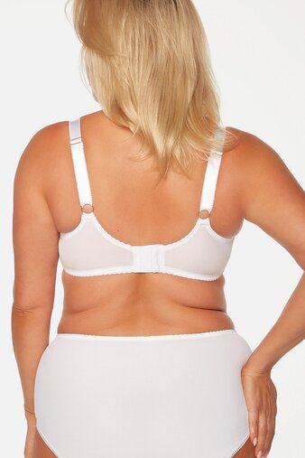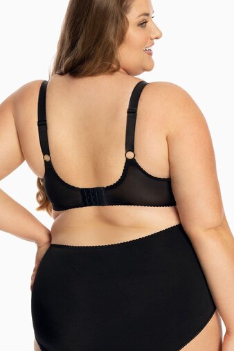 Чашка с тройным членением и двойная усиленная боковая часть собирают грудь, придают бюсту приподнятый и округленный вид. Подкладка из мягкой прочной сетки в нижней части чашки добавляет легкости и комфорта при ношении. Двойные подвижные боковые косточки гарантируют адаптацию к движению тела и повышают комфорт при ношении. Тройной крючок.