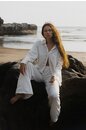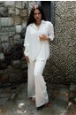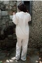 Комфортный и элегантный комплект, состоящий из брюк и рубашки, выполнен из армани шелка. Широкие струящиеся брюки в пол подчеркнут бедра и сделают ножки бесконечно длинными, а рубашка с красивыми манжетами и интересной потайной планкой для пуговиц, станет дополнением к ним. Универсальный комплект можно одевать в паре или носить по отдельности. Он станет прекрасным образом как для дома, так и для прогулок и свиданий.