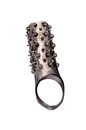 Эрекционное кольцо фиксируется у основания и охватывает мошонку, за счет чего эрекция становится более устойчивой и может длиться дольше, а ощущения – интенсивнее. Насадка покрыта небольшими мягкими выпуклостями и шипиками, которые при каждом движении дополнительно массируют вагинальные стенки, усиливая возбуждение и делая проникновение более ярким и ощутимым для партнерши.