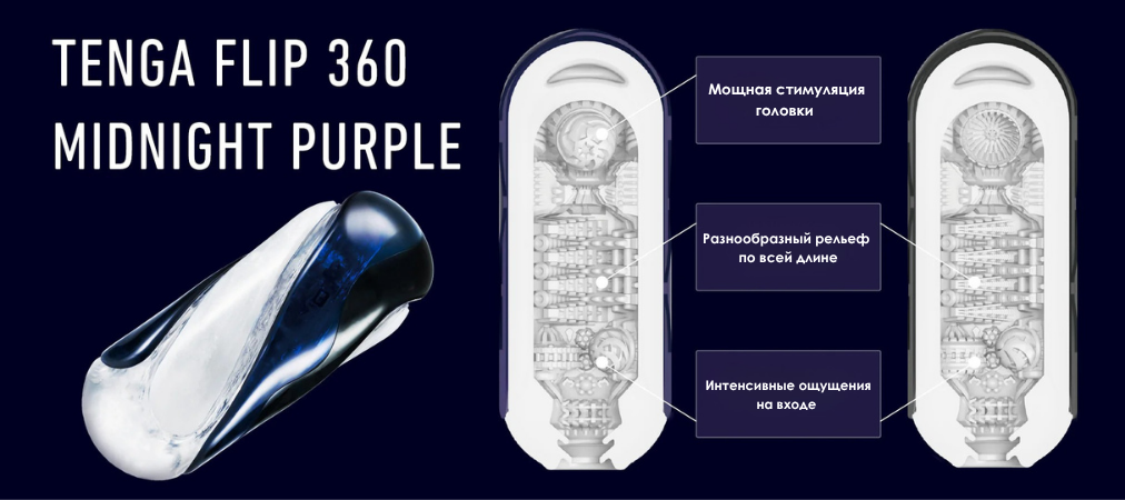TENGA Flip 360 Midnight (синий) дарит ярко выраженную и насыщенную стимуляцию. В конце канала он имеет объемную сферу, которая создает стойкое ощущение глубокого проникновения. Это выбор для тех, кто предпочитает интенсивные ощущения: выраженный рельеф внутри и насыщенная текстура, которая чувствуется с первого движения.