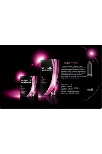 Если вы ищите максимально реалистичных ощущений от секса, но хотите обеспечить себя и партнершу надежной защитой, обратите внимание на презервативы Vitalis Premium Super Thin. Они подарят максимум удо