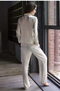 Классическая пижама. Состоит из жакета и длинных брюк из натурального шелка. Жакет полуприлегающего покроя с застежкой на пуговицы и отложным воротником. Рукав втачной на манжете. Длинные брюки свободного покроя на эластичной тесьме (резинке) в поясе, с карманами в боковых швах. Состав: 100% шелк