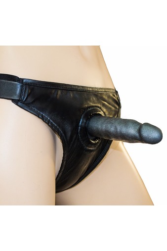 Трусики из эластичной кожи с резиновым кольцом для насадок. дополнен пряжками для регулировки размера и двумя насадками. одна насадка из материала неоскин- имеет мощную присоску. вторая насадка из пол