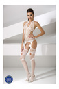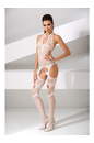 Бодистокинг сетка, представляет собой топ без лямок с чулками на широких подвязках. Спинка открытая, вырез горловины под горлышко. Спереди овальный вырез, красиво обнажающий ложбинку, также овальные в