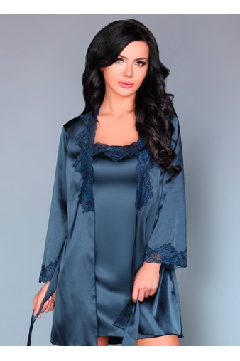 Элегантный комплект из искусственного шёлка состоит из сорочки на тонких бретелях, пеньюара и трусиков. Комплект сделает Ваше тело настоящим центром притяжения мужского внимания, а также идеально подойдет для комфортного отдыха и ежедневной носки дома. Комплект белья украшен кружевом. Короткая сорочка на тонких регулируемых бретелях обнажает спину и плечи. Зона декольте расшита кружевом с цветочным узором. Элегантный пеньюар с длинными рукавами также декорирован кружевами. Завязывается на талии с помощью пояса. Аккуратные трусики стринги в тон завершают комплект. Состав ткани: 95% Полиэстер, 5% Эластан. Страна: Польша.