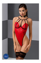 Красное эротическое боди из эластичного нежного материала с черной окантовкой, которая придает пикантности этой модели соблазнительного белья. Фигурные чашечки красиво оформлены черными бретельками, к