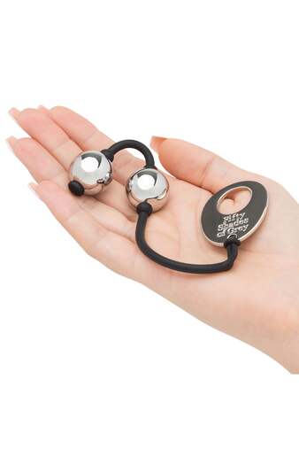 Миниатюрные вагинальные шарики Inner Goddess от популярного бренда Fifty Shades of Grey – это простая и универсальная секс-игрушка, которая доставит вам чувственное наслаждение во всей его полноте и яркости, а также поможет привести в тонус интимные мышцы! Гладкие шарики серебристого цвета надеты на гибкий шнурок из силикона, который добавляет комфорта в использовании. Они не скользят и меняют местоположение, так как фиксируются узелками на шнурке. Вагинальные шарики – идеальный тренажер для мышц тазового дна, который со временем сделает ваши оргазмы ярче и интенсивнее. Шарики удобны тем, что вы можете использовать их в любой ситуации: занимаясь повседневными делами, на работе или прогулке, во время занятий в спортзале. Для удобства извлечения игрушки у нее есть гибкий хвостик с рукояткой-кулоном, на которую нанесена фирменная гравировка. Вагинальные шарики изготовлены из металла. Это гигиеничный и безопасный для тела материал, совместимый с любыми подходящими вам лубрикантами. Общая длина – 21,6 см, диаметр каждого шарика – 2,2 см. Обратите внимание, несмотря на миниатюрный размер, шарики довольно увесистые – 97 г. Рекомендации по уходу: Для обработки изделия используйте той-клинер в формате спрея или пенки. Игрушку можно промыть под проточной водой. После обработки рекомендуется насухо протереть безворсовым одноразовым полотенцем. Допускается протереть изделие влажной салфеткой. Храните игрушку в индивидуальном мешочке из не окрашивающего материала.