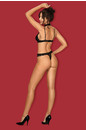 Чувственное боди-стинг черного цвета. Изготовлено из прозрачного тюля с геометрическим узором в крапинку. Мягкие чашечки на косточках поддерживают грудь. Кружевное украшение-чокер декорировано пуговка