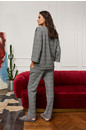 Удобные домашние брючки выполнены из смесовой ткани черно-белого цвета с модным принтом "гусиная лапка". Модель прямого кроя. Комфортный пояс дополнен мягкой резинкой. По бокам брюк расположены глубок