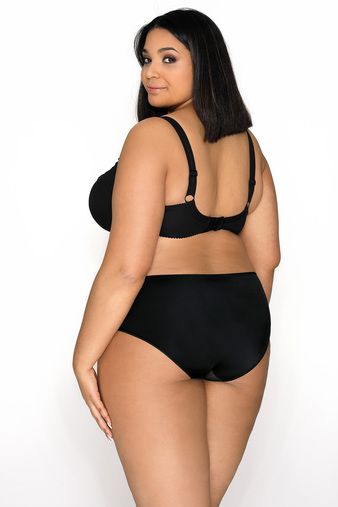 Красивый, элегантный бюстгальтер с мягкой чашкой, предназначенный специально для женщин с большой грудью. Чашки изготовлены из нежного материала и черной сеточки в мелкий горошек. Бретели регулируютс