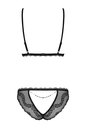 Пикантный комплект нижнего белья выполнен из эластичной сеточки и кружева. Лиф мягкий без косточек с разрезами, бретели регулируются по длине, на спинке удобная застежка. Трусики с вырезом на ягодицах
