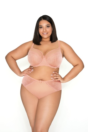 Чувственный мягкий бюстгальтер пудрово-розового цвета. Верхняя часть чашки изготовлена из эластичной сетки с окантовкой. Нижняя часть чашки и перемычка покрыты красивым кружевом. Бант с ювелирной под