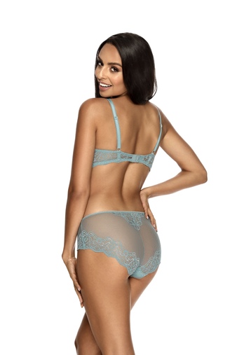 Голубой бюстгальтер с вкладышами пуш-ап на каркасах. Чашечки украшены ажурным кружевом. Бюстгальтер собирает, приподнимает и идеально подчеркивает бюст. Страна производителя: Польша. Производитель: M