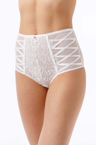 Белье Coquette Revue — это успешное сочетание традиций искусства создания женского белья и новых, всегда актуальных тенденций. Белье бренда, следуя французским традициям стиля, даёт возможность женщинам почувствовать себя счастливыми, ощутить свою индивидуальность, примерить на себя все новые и новые образы. Трусы-бразилиана с высокой линией талии. Передняя деталь выполнена из красивого кружева, задняя деталь выполнена из сеточки. Особую пикантность модели придают эластичные стреп-лент. Состав материала изделия: 80% полиамид, 15% эластан, 5% хлопок. Производитель: Coquette Revue. Страна производителя: Франция.