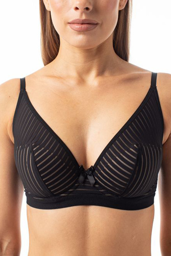 Бельё данного бренда - успешное сочетание традиций искусства создания женского белья и новых, всегда актуальных тенденций. Бюстгальтер-бралетт выполнен из тончайшей сетки в полоску. Нижняя часть стан