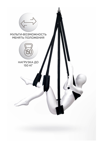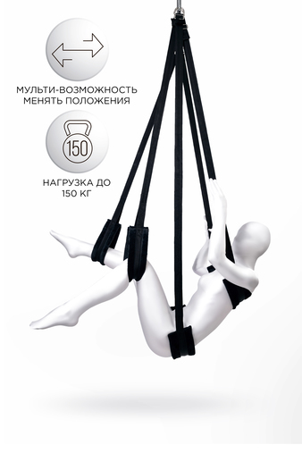 Ощущение полета! Расширенные возможности! Абсолютно новые впечатления! Секс-качели – аксессуар для тех, кто действительно любит секс во всех его проявлениях. Благодаря им вы сможете отдаться страсти, и в прямом смысле слова оторваться от земли. Все ремни регулируются, давая возможность бесконечно менять позы. Сидя, лежа, лицом или спиной к партнеру. Мягкие плюшевые подушки-опоры нежно обхватывают и поддерживают тело в любом положении. Тестируйте новые позы, добавляйте экстрима, варьируйте положение тела для собственного удовольствия, и наслаждайтесь парением! Материал: велюр, нейлон. Длина ремней до поперечин: 153 см, 136 см. Длина до ног: 112 см. Рабочая длина петли для ног: 55 см. Ширина поперечины: 12 см. Ширина петли для ног: 10 см. Нагрузка: до 150 кг. Штанга для крепления к потолку не идет в комплекте.