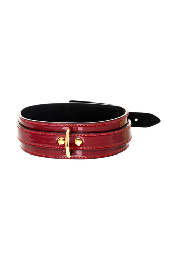 Играйте и подчиняйтесь красиво! Для этого был создан ошейник из лакированного материала благородного винного цвета с металлической отделкой золотого цвета. Он демонстрирует утонченный вкус обладателя