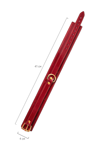 Играйте и подчиняйтесь красиво! Для этого был создан ошейник из лакированного материала благородного винного цвета с металлической отделкой золотого цвета. Он демонстрирует утонченный вкус обладателя, одновременно являясь достаточно строгим атрибутом БДСМ-тематики. Он достаточно жестко обхватывает шею, зато в нем вы всегда будете слушаться своего Господина без возможности опустить голову. Кольцо на ошейнике позволяет дополнить игру поводком или другими необходимыми аксессуарами. Размер регулируется металлической пряжкой. Длина ошейника - 41 см. Ширина ошейника - 4 см.