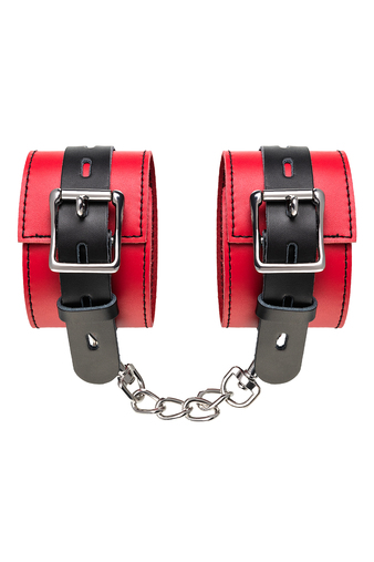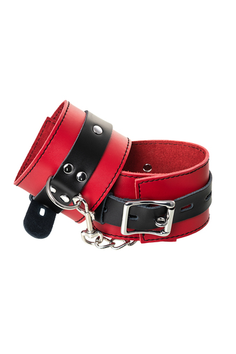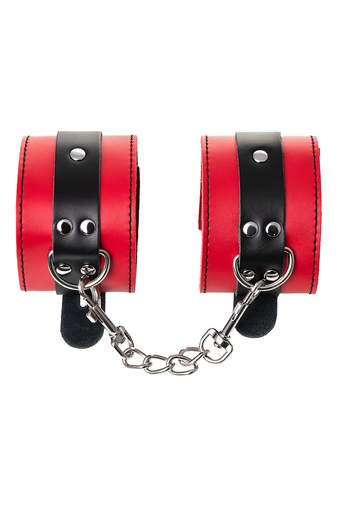 Оковы на ноги - волнующий воображение аксессуар, ведь это способ зафиксировать ноги партнера и получить полный доступ к его телу. Но не забудьте про стоп-слово. Оковы из мягкой натуральной кожи сочетают в себе элементы, возбуждающие страсть и фантазию: красный и черный цвета и отделка металлическими элементами. В них будет комфортно подчиняться и ощущать ограничение свободы действий. Не натирают и имеют надежную степень фиксации. Размер легко регулируется металлической пряжкой. С помощью металлической цепочки и карабинов можно фиксировать ноги вместе, либо дополнить игру цепочкой и сковать ноги в широко разведенном положении. Эта пара - отличный вариант для начинающих в БДСМ-играх. Так почему бы не открыть для себя что-то новое? Длина оков - 28 см. Ширина оков - 6 см. Длина сцепки - 15,5 см. Материал: кожа, металл.