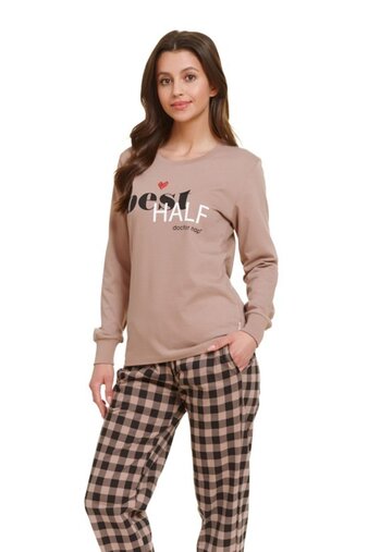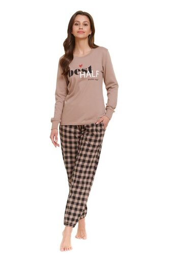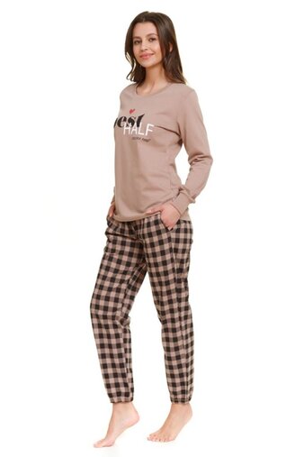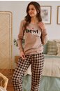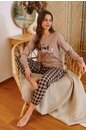 Пижамный комплект, состоящий из лонгслива и прямых брюк в клетку. Удобная и стильная пижама отлично подходит для сна, отдыха дома или для повседневной жизни.