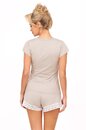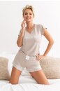 Однотонная пижама Simply состоит из футболки с надписью на груди и шортиков базового бежевого цвета. Футболка с V-образным вырезом. Шорты с контрастным бантиком в цвет футболки и нежным кружевом белог