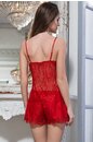Комплект с шортами Mia-Amore выполнен из ажурного французского кружева Шантильи (, Chantilly), . Отрезной лиф топа декорирован изящным бантиком со сверкающей подвеской. Шорты из кружева продублированы подкладкой из атласа в тон.