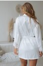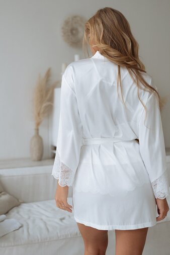 Элегантный халат с кружевными вставками на рукавах из бело-молочного армани шелка станет твоим идеальным образом для дома. Сдержанный с одной стороны, но при этом невероятно сексуальный и приковывающи