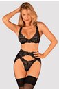Черный комплект Donna Dream, состоящий из бюстгальтера на косточках, стрингов и пояса для чулок. Чувственный крой подчеркивает женственные формы и пробуждает воображение, а соблазнительное кружево при