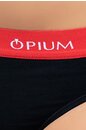 Трусы-стринг с заниженной талией из хлопка с эластаном, с комфортной фирменной резинкой нарядного контрастного красного цвета с логотипом OPIUM, на каждый день и занятий спортом.